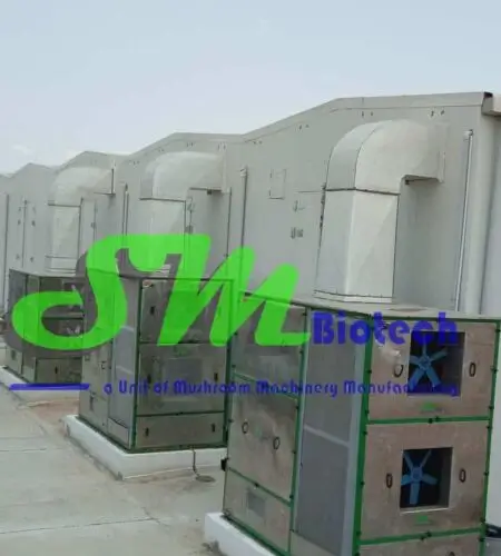 Ce système assure la pasteurisation, le conditionnement et la pulvérisation de l’eau afin de protéger les champignons contre les infections provenant des sources d’eau.