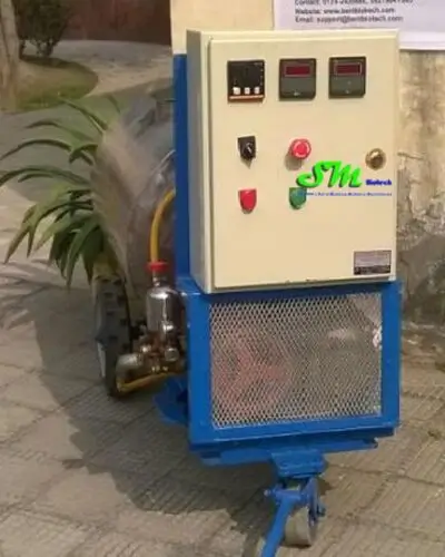 Système de pasteurisation capable de traiter 250 litres d’eau par cycle.