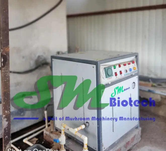 Ce système assure la pasteurisation, le conditionnement et la pulvérisation de l’eau afin de protéger les champignons contre les infections provenant des sources d’eau.
