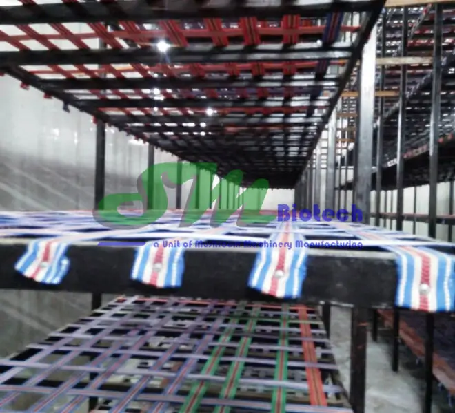 Ce système assure la pasteurisation, le conditionnement et la pulvérisation de l’eau afin de protéger les champignons contre les infections provenant des sources d’eau.