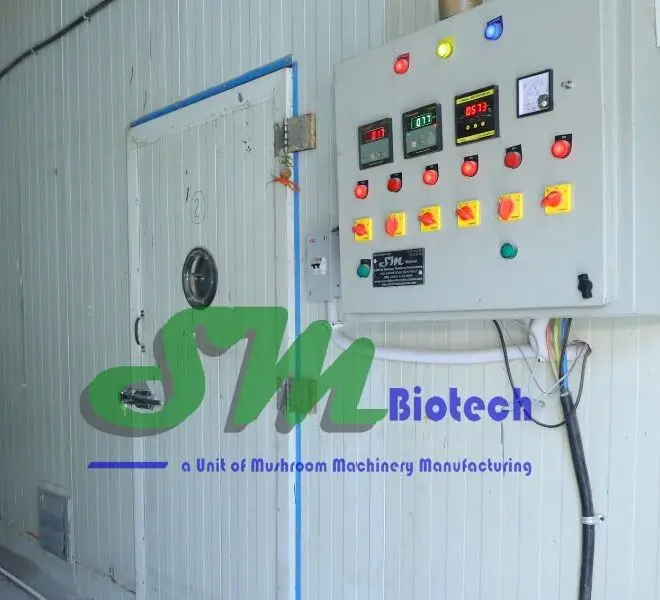 Ce système assure la pasteurisation, le conditionnement et la pulvérisation de l’eau afin de protéger les champignons contre les infections provenant des sources d’eau.