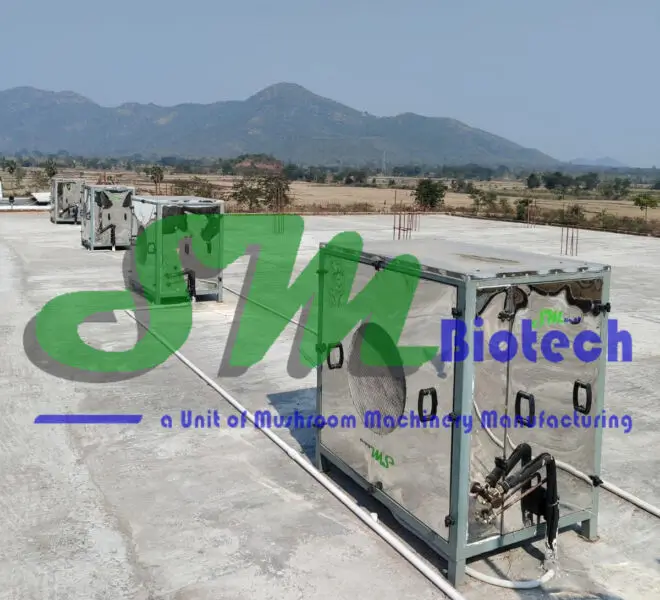 Ce système assure la pasteurisation, le conditionnement et la pulvérisation de l’eau afin de protéger les champignons contre les infections provenant des sources d’eau.