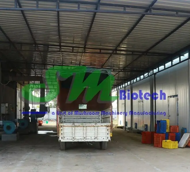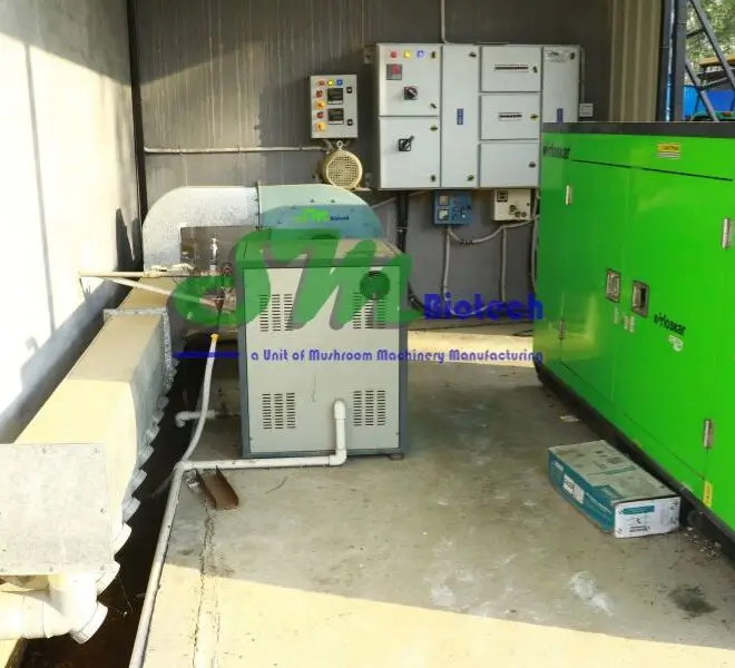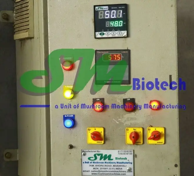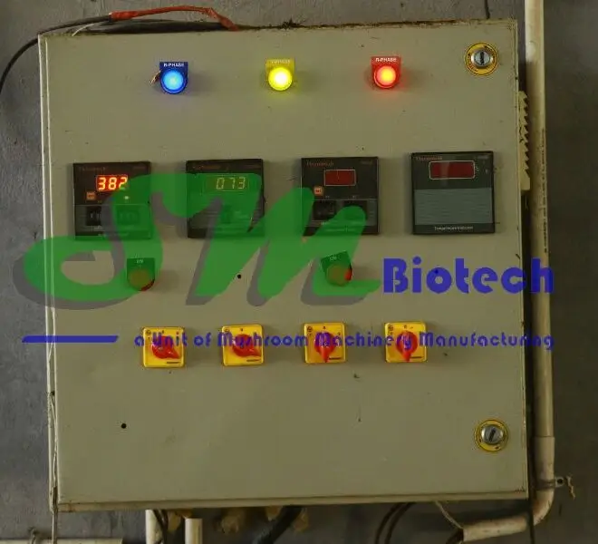 Ce système assure la pasteurisation, le conditionnement et la pulvérisation de l’eau afin de protéger les champignons contre les infections provenant des sources d’eau.