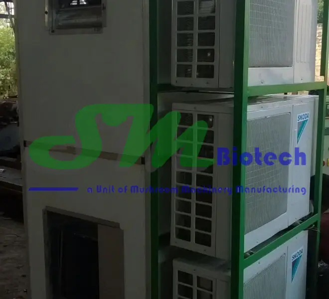 Ce système assure la pasteurisation, le conditionnement et la pulvérisation de l’eau afin de protéger les champignons contre les infections provenant des sources d’eau.