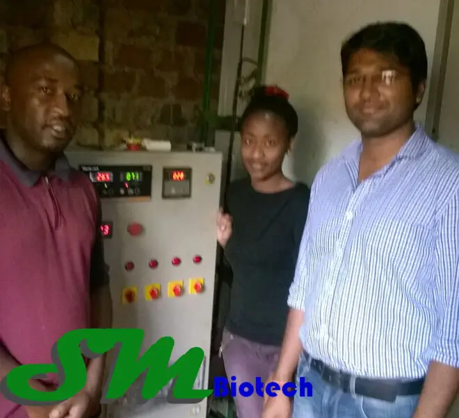 Système de pasteurisation capable de traiter 250 litres d’eau par cycle.
